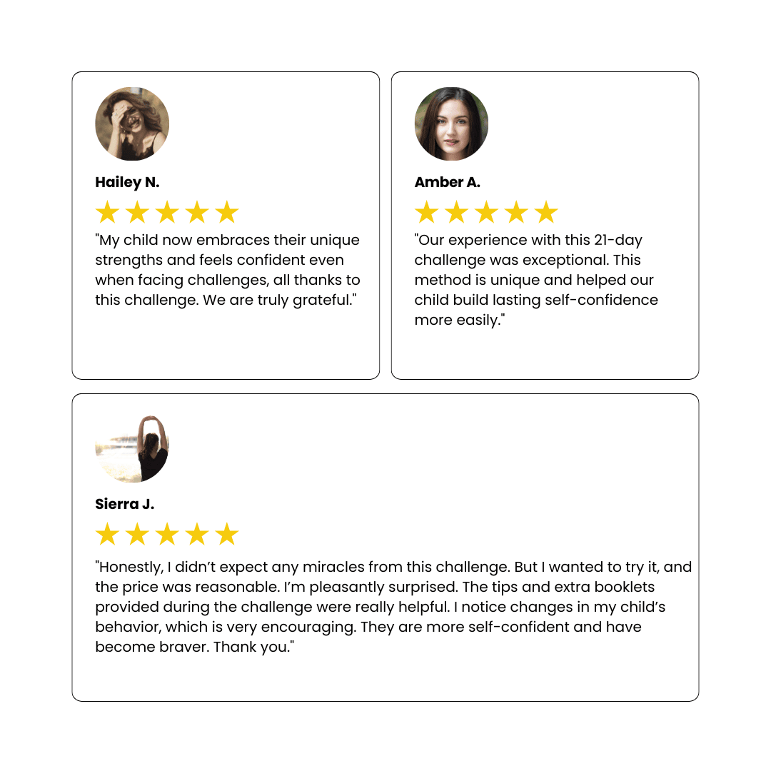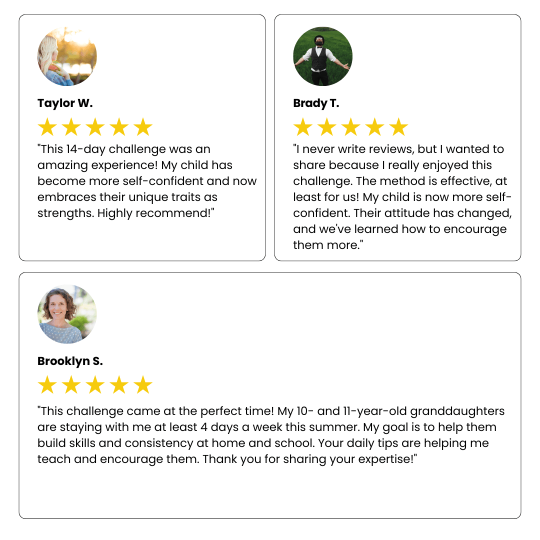 ✅ A new confidence-building strategy each day: Every day of the challenge, you'll get a short email with one targeted strategy to build your child's confidence. These emails take only 5 minutes to read.