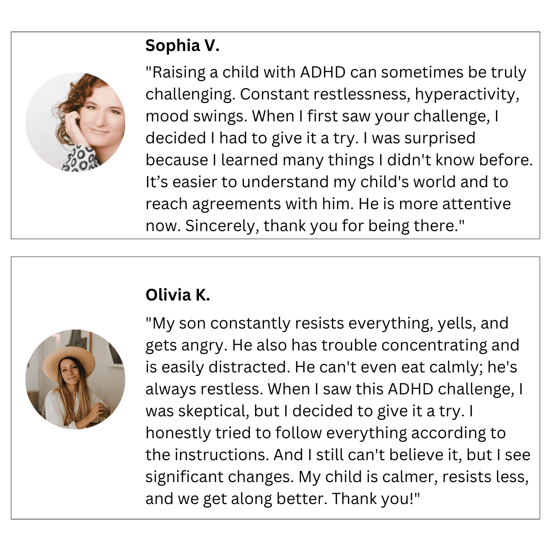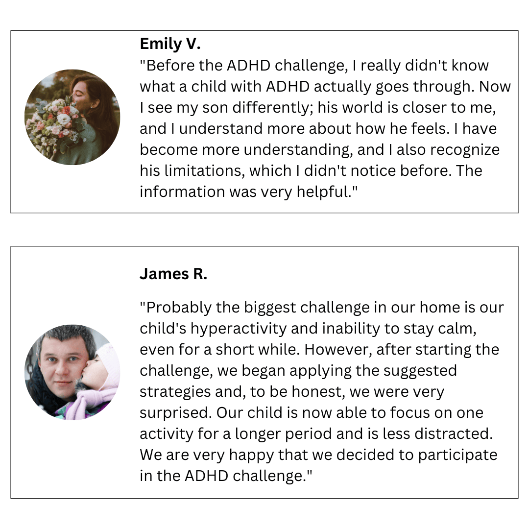 In this challenge, you will find 28 specially tailored strategies for parents raising a child with ADHD. Therefore, the price of the challenge could be much higher.